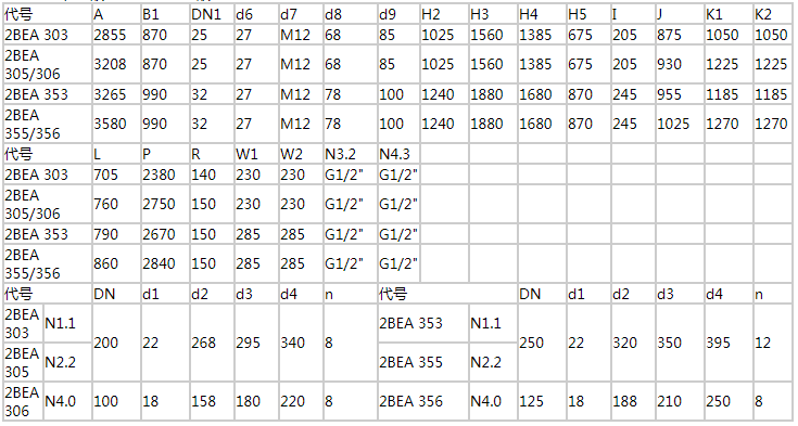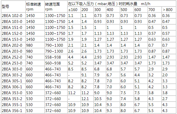注:以上所選電機(jī)功率可在大多工況下工作。如排氣口壓力較高(0.02~0.05MPa),則應(yīng)相應(yīng)加大電機(jī)功率;如2BEA水環(huán)式真空泵正常工作時(shí)軸功率較小,也可選用接近軸功率的電機(jī)功率,如此更為節(jié)能。