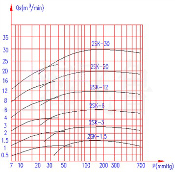 因SK系列水環(huán)真空泵只能達到-700mmHg的極限真空度,為達到較高真空及高真空下的較大抽氣速率,20世紀80年代國內(nèi)開發(fā)了2SK水環(huán)式真空泵。